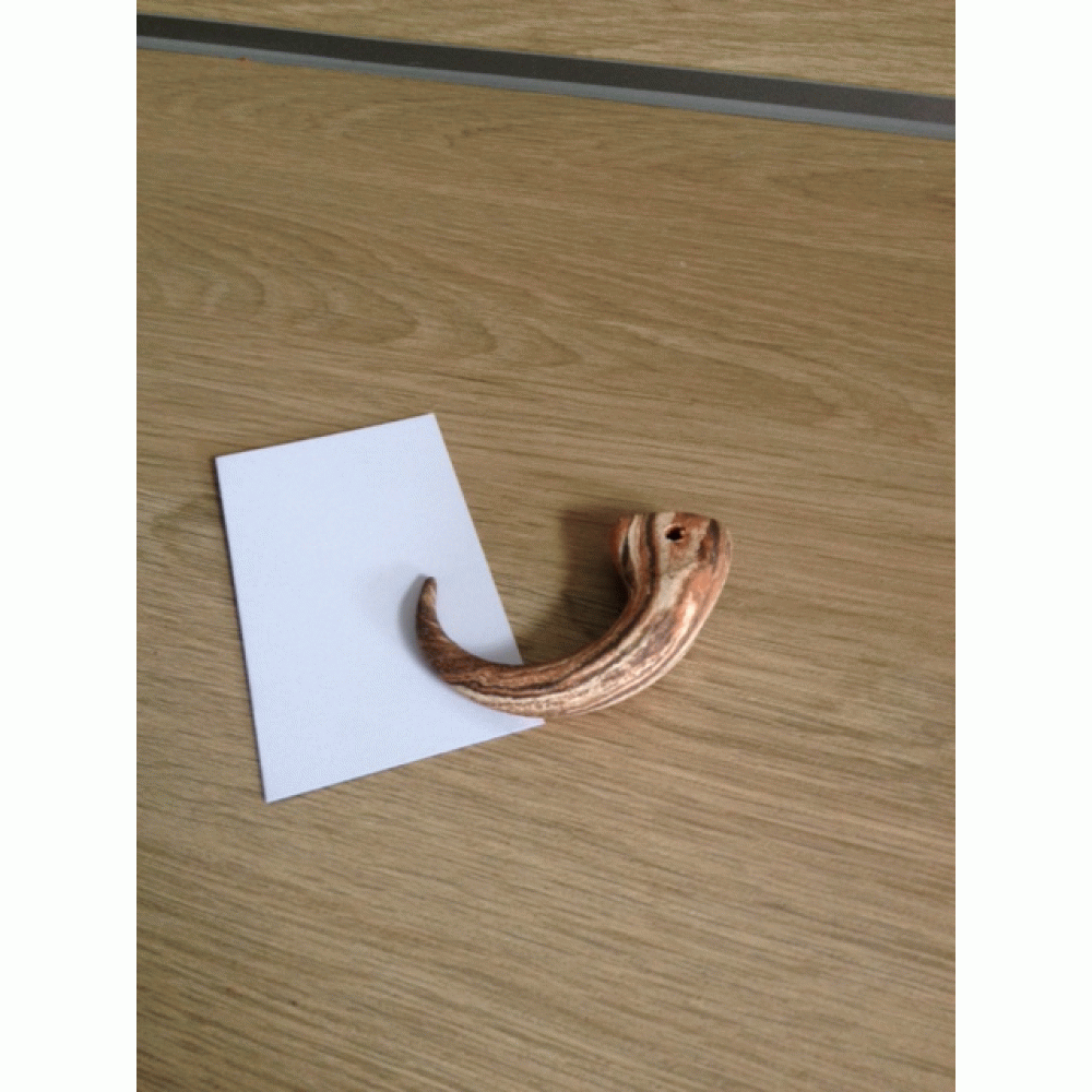 Handgemaakte kromme-haak van gebakken klei. Oventemperatuur ca. 1200 graden. Deze haken worden gebruikt als spies voor courgette, paprika of komkommer partjes op te steken als voer voor de herbivoren. Omdat het handwerk is kunnen er onderlinge kleine maattoleranties, kleurverschillen en vormen zijn.