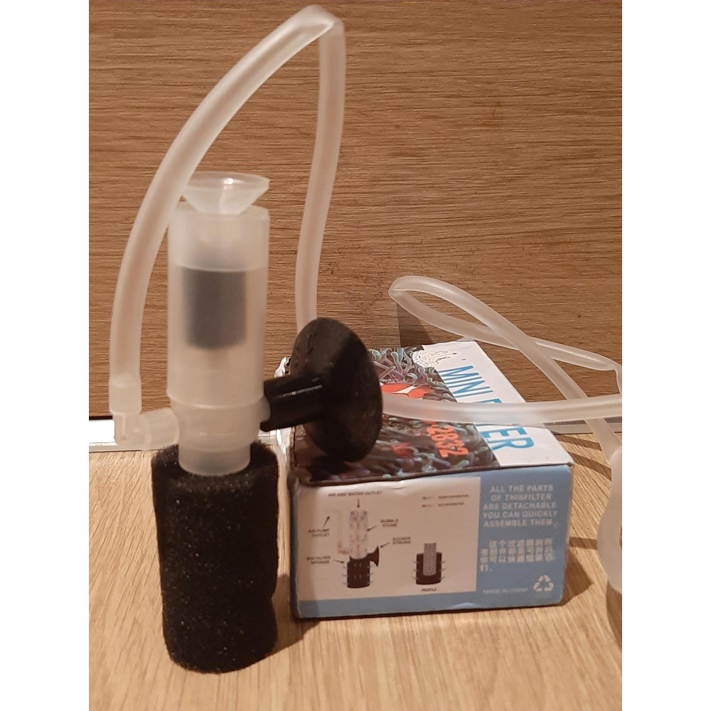 Biochemisch sponsfilter werkt op lucht zorgt voor zowel een biologische als mechanische filtratie en levert zuurstof aan het water. Een luchtpompje van 2,5 Watt is vaak al voldoende. Eenvoudig middels de zuignap aan een glad oppervlak, bijvoorbeeld het aquariumraam, te bevestigen. Het filter is eenvoudig te reinigen en het sponsje kan in water worden uitgespoeld.